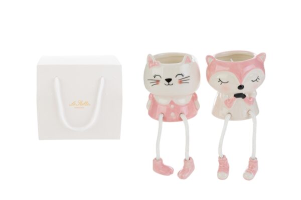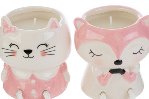 CANDELA ANIMALI PORCELLANA 2ASS.7,5×7,5xh.8,5CM ROSA C/SHOPPER 13693