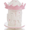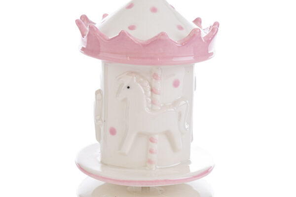 Un’incantevole giostrina in porcellana dal delicato colore rosa, perfetta per celebrare momenti speciali. Con un’altezza di 16,5 cm, è ideale come bomboniera per una nuova nascita o un battesimo, combinando raffinatezza e dolcezza in ogni dettaglio. Un ricordo prezioso che aggiungerà un tocco di classe senza tempo a ogni occasione importante.