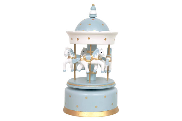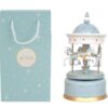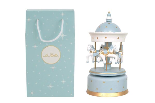 Un raffinato carillon in legno dal colore celeste, perfetto per celebrare momenti speciali. Con le sue dimensioni compatte di 10,5×21 cm e la shopper inclusa, è ideale come bomboniera per una nuova nascita o un battesimo. Un tocco delicato che conserva ricordi preziosi.