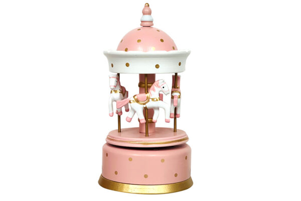 Un delicato carillon in legno dipinto di rosa, perfetto per celebrare momenti speciali. Con il suo design curato e dimensioni armoniose (10,5 x H 21 cm), si adatta splendidamente come bomboniera per una nuova nascita o un battesimo. Un dono ricercato che affascina con il suo tocco senza tempo.