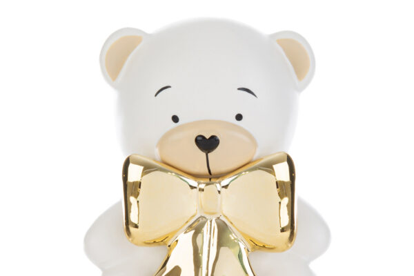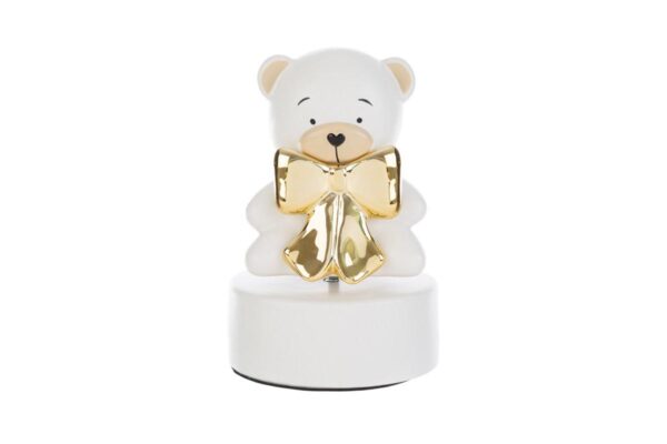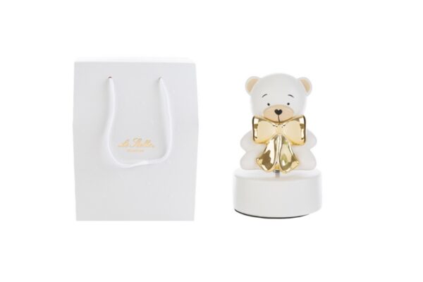 Eleganza e raffinatezza si incontrano nel carillon a forma di orsetto, realizzato in porcellana bianca. Le sue dimensioni perfette, 9xH14 cm, lo rendono un’opzione ideale come bomboniera per ogni tipo di evento. Completo di shopper abbinato, è il dettaglio che aggiunge charme a qualsiasi occasione speciale.