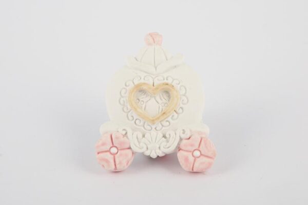 Perfetta per celebrare momenti speciali, questa carrozza in resina rosa unisce stile e raffinatezza. Ideale come bomboniera per nuove nascite o battesimi, è un dettaglio unico che conquista per la sua lavorazione accurata e il colore delicato. Un piccolo simbolo dal grande significato, perfetto come ricordo prezioso.