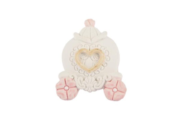 Perfetta per celebrare momenti speciali, questa carrozza in resina rosa unisce stile e raffinatezza. Ideale come bomboniera per nuove nascite o battesimi, è un dettaglio unico che conquista per la sua lavorazione accurata e il colore delicato. Un piccolo simbolo dal grande significato, perfetto come ricordo prezioso.