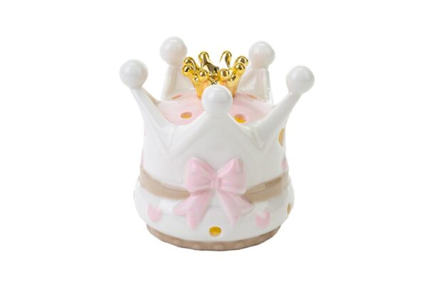 Delicata e raffinata, questa corona in porcellana rosa rappresenta un’idea perfetta per celebrare momenti speciali. Le dimensioni compatte di 10 x h9 cm la rendono ideale come bomboniera, sia per una nuova nascita che per un battesimo. Un dettaglio dal fascino intramontabile che aggiunge un tocco di classe a ogni occasione speciale.