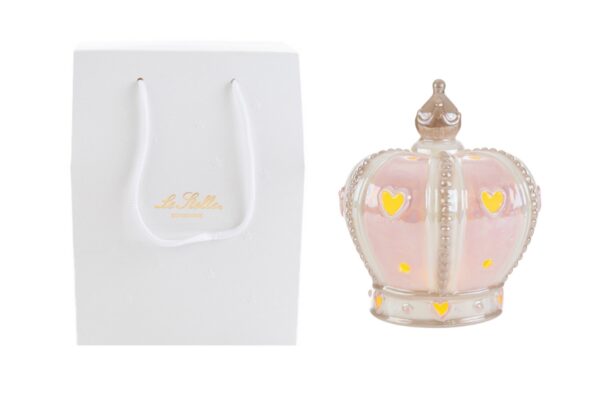 CORONA PORCELLANA LED 13×11,5×6,5CM ROSA C/SHOPPER 13694