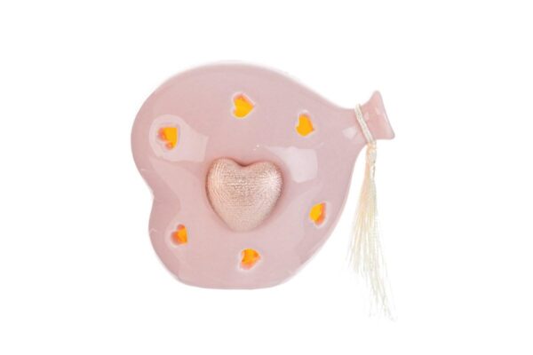 CUORE BALLOON PORCELLANA LED ROSA 11x8x11CM C/SHOPPER 13693