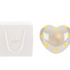 Dettaglio raffinato in porcellana bianca, il cuore dalle dimensioni compatte 8x8xh.5 cm si presenta come un simbolo di affetto e purezza. Ideale come bomboniera per celebrare con stile nascite e battesimi, include una shopper dallo charme discreto che ne esalta l’eleganza senza tempo.