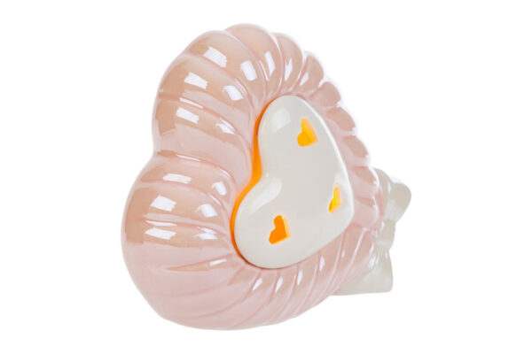 CUORE ROSA LED PORCELLANA 13x6x10,5CM C/ASTUCCIO