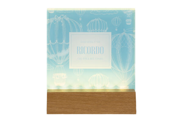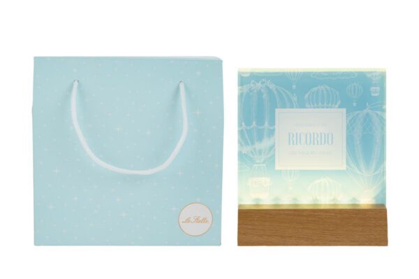 DECORAZIONE VETRO LED CELESTE 12,5×4,5xh.14,5CM C/SHOPPER 156641