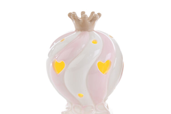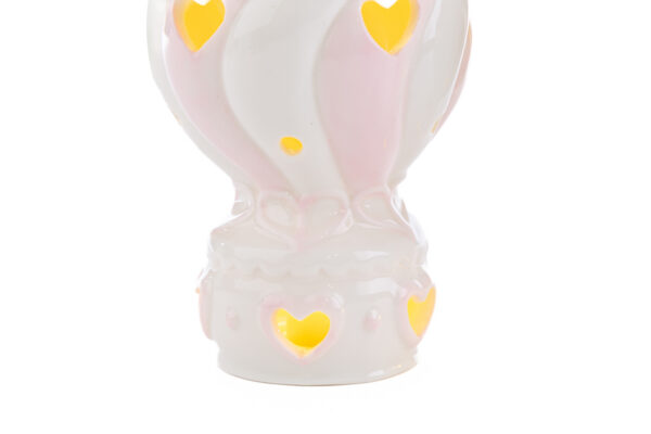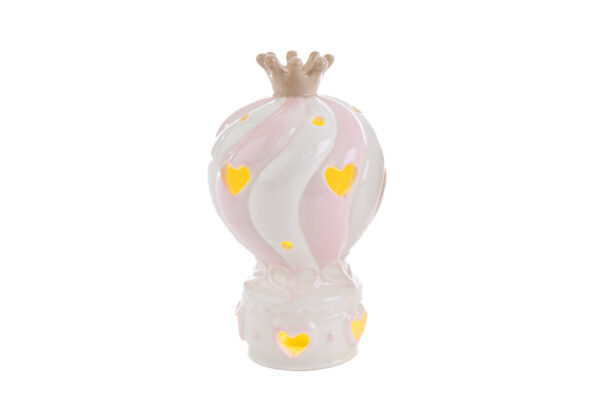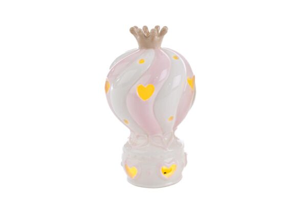 Un tocco di dolcezza e raffinatezza prende forma con la mongolfiera in porcellana color rosa, illuminata da una luce LED morbida. Perfetta come bomboniera per celebrare una nuova nascita o un battesimo, combina design delicato e simbolismo unico. Un ricordo prezioso che illumina ogni occasione speciale.