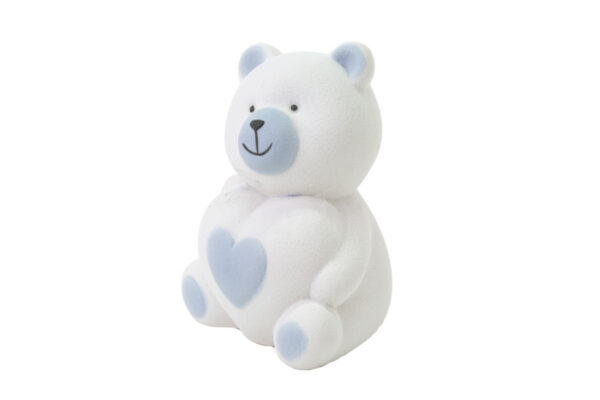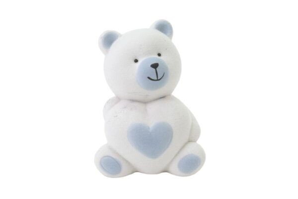 Un dolce orsetto in porcellana dal colore celeste, perfetto per celebrare momenti speciali. Le sue dimensioni compatte di 6,5×8 cm lo rendono ideale come bomboniera raffinata e tenera. Un pensiero unico, adatto sia per festeggiare una nuova nascita che per un battesimo indimenticabile.