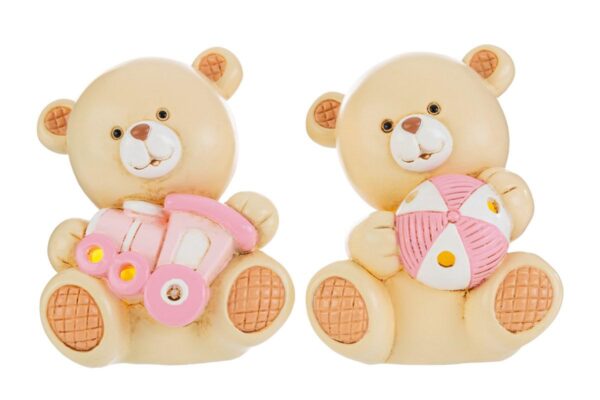 Orsetto in resina color rosa, un dettaglio sofisticato che unisce dolcezza e stile. Perfetto come bomboniera per celebrare una nuova nascita o un battesimo, aggiunge un tocco delicato a ogni evento speciale. Dimensioni compatte (6x8xh.9 cm), ideale per donare ricordi preziosi con raffinatezza senza tempo.