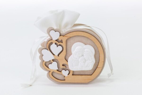 Perfetta per celebrare momenti speciali, questa bomboniera in legno raffigura la Sacra Famiglia con delicatezza e stile. Le sue dimensioni di 8×3,5xh.7 cm la rendono ideale sia per una nuova nascita che per un battesimo. Un dono raffinato e dal profondo significato spirituale.