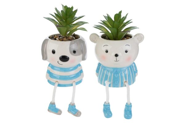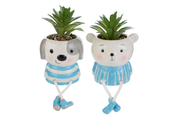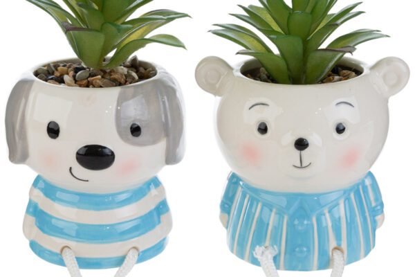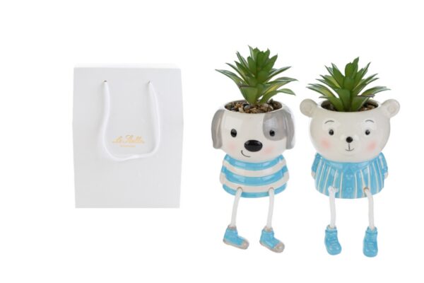 PIANTINA ANIMALI PORCELLANA 2ASS.8,5×8,5xh.14CM CELESTE C/SHOPPER 13694
