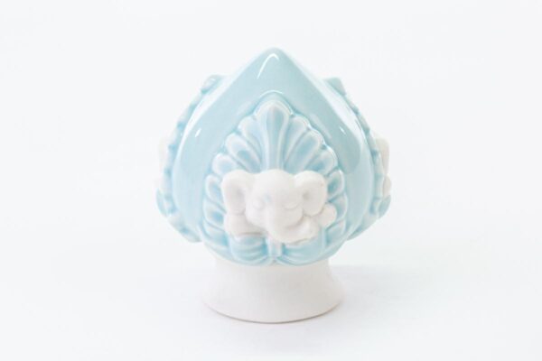 Un design raffinato e un colore celeste delicato rendono questo piccolo elefante in porcellana un simbolo di dolcezza e buon augurio. Perfetto come bomboniera, è l’ideale per celebrare una nuova nascita o un battesimo, aggiungendo stile e significato a ogni momento speciale.