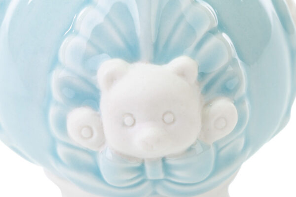 Perfetta per celebrare momenti speciali, questa bomboniera in porcellana celeste è ideale sia per una nuova nascita che per un battesimo. Con le dimensioni di 7x7xh.8 cm, si distingue per il suo design sobrio e raffinato, aggiungendo un tocco di classe a ogni occasione memorabile.