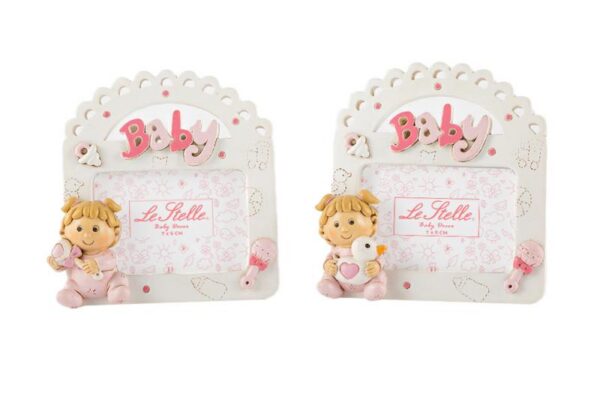 Un dolce portafoto in resina rosa, perfetto per custodire i ricordi più preziosi. Con il suo design grazioso e le dimensioni compatte di 10×10 cm, è ideale come bomboniera per celebrare una nuova nascita o un battesimo. Un dettaglio raffinato che aggiunge un tocco di tenerezza a ogni occasione speciale.