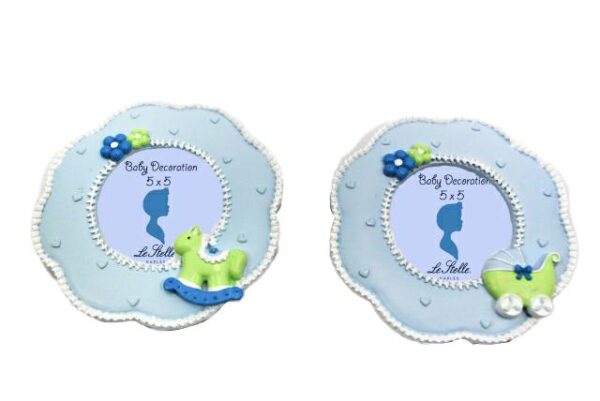 Un raffinato portafoto in resina celeste, disponibile in due varianti, perfetto per custodire i ricordi più preziosi. La tonalità delicata lo rende ideale come bomboniera per celebrare una nascita o un battesimo. Con le sue dimensioni compatte di 10×10 cm, si adatta facilmente a ogni spazio.