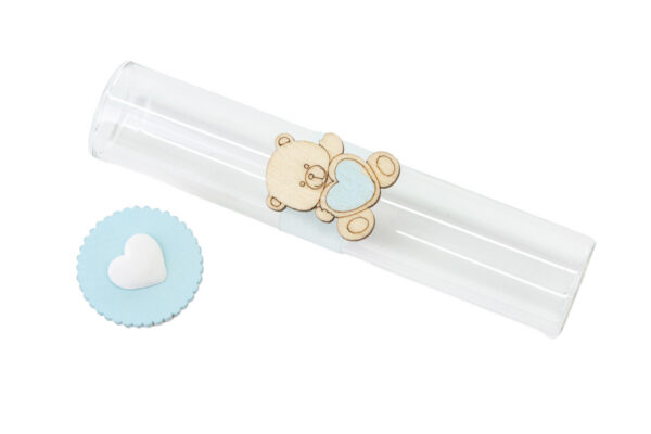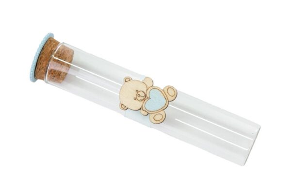 Un raffinato tocco di tenerezza con la provetta in vetro Orsetto celeste, perfetta per celebrare momenti unici. Realizzata in vetro trasparente e decorata con dettagli delicati, è ideale come bomboniera per una nuova nascita o un battesimo. Un piccolo dono dal grande impatto simbolico.