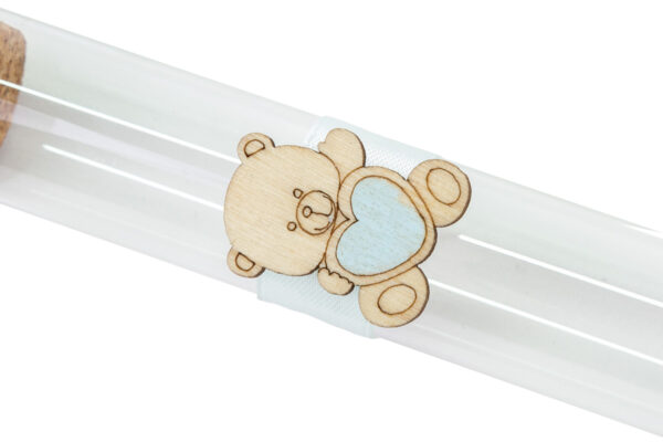 Un raffinato tocco di tenerezza con la provetta in vetro Orsetto celeste, perfetta per celebrare momenti unici. Realizzata in vetro trasparente e decorata con dettagli delicati, è ideale come bomboniera per una nuova nascita o un battesimo. Un piccolo dono dal grande impatto simbolico.
