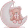 Un piccolo dettaglio di grande dolcezza, realizzato in legno e dipinto in una delicata tonalità rosa. Questo orsetto su luna è perfetto come bomboniera per celebrare una nuova nascita o un battesimo. Un oggetto unico che coniuga semplicità e raffinatezza.