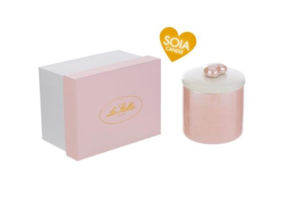 Un raffinato design in porcellana rosa impreziosisce questa scatola con candela in soia, perfetta per donare un tocco di stile e calore agli ambienti. Ideale come bomboniera per celebrare una nuova nascita o un battesimo, coniuga gusto estetico e funzionalità nella sua forma compatta ed elegante.