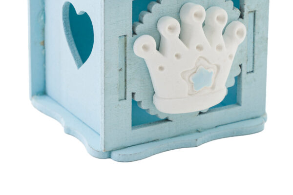 Realizzata in legno e dipinta di un delicato celeste, questa scatola dal design raffinato è perfetta per custodire piccoli ricordi. Ideale come bomboniera per celebrare una nuova nascita o un battesimo, si distingue per le sue dimensioni compatte di 5,5×5,5xh7 cm e il tocco sofisticato che porta con sé.
