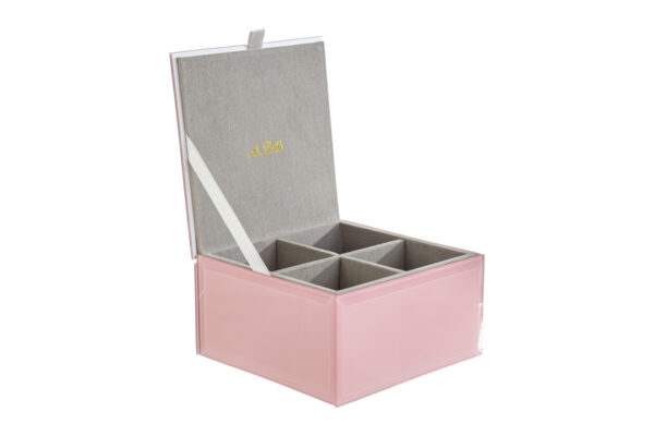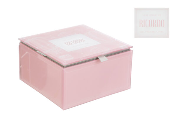 SCATOLA VETRO ROSA 12x12xh.7CM C/SHOPPER 156644