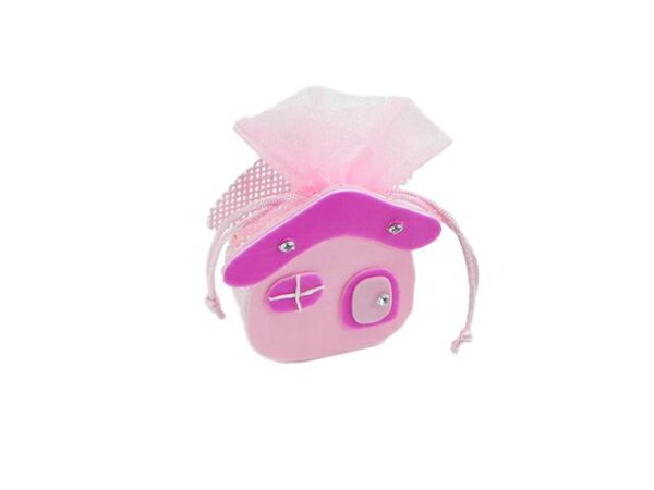 Deliziosa confezione in carta rosa, perfetta per celebrare momenti speciali. Grazie al suo design a casetta e alle dimensioni compatte di 7,5×3,5xh.8 cm, è ideale come bomboniera sia per una nuova nascita che per un battesimo. Dettagli raffinati che aggiungono un tocco unico alle tue occasioni.