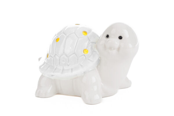 Un tocco di raffinatezza per celebrare i momenti speciali: questa tartaruga in porcellana bianca con luce LED integra design delicato e utilità. Con dimensioni compatte di 8 x 10 x h.6 cm, è perfetta come bomboniera per una nuova nascita o un battesimo, aggiungendo calore e stile all’occasione.