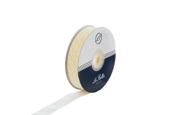 Nastro organza pois 20mm x 50 mt colore panna รจ una soluzione elegante per bomboniere nastro, ideale per confezionare piccoli regali e decorazioni. La texture trasparente e il motivo a pois bianchi aggiungono un tocco raffinato e contemporaneo alle creazioni. Il materiale in organza offre leggerezza e un effetto visivo delicato. La bobina lunga garantisce numerose applicazioni senza interruzioni, perfetta per eventi, matrimoni o cerimonie.