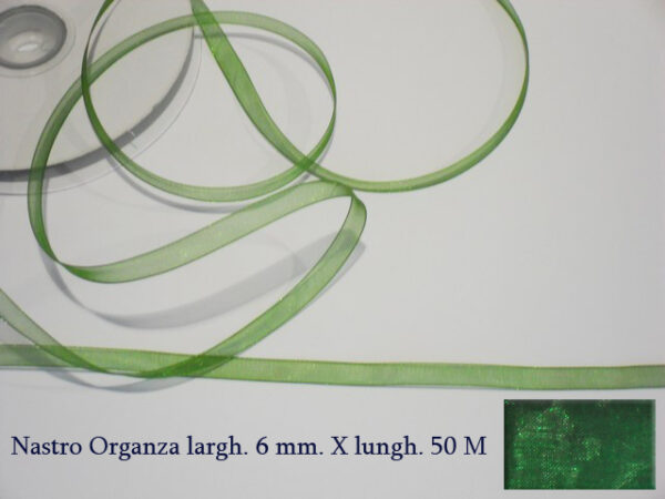NASTRO ORGANZA VERDE 6 MM X 50 M*PREZZO NETTO*