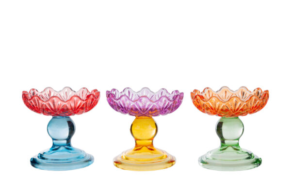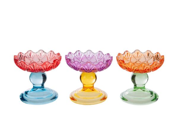 ALZATINA VETRO COLORATO 3 ASS.9,5xh.9CM C/COLOR/BOX