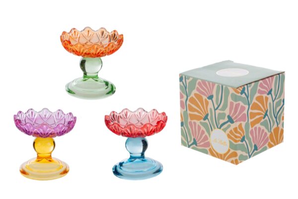 ALZATINA VETRO COLORATO 3 ASS.9,5xh.9CM C/COLOR/BOX