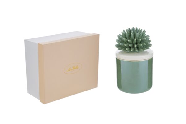 Perfetta per ogni occasione speciale, questa elegante candela in porcellana verde con coperchio decorativo a forma di corallo è un raffinato elemento decorativo. Grazie al suo design sofisticato e alla cura nei dettagli, rappresenta una bomboniera ideale per celebrare eventi importanti con stile.