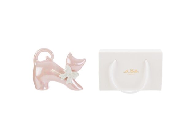 Un elegante gattino in porcellana, disponibile in due varianti, con design raffinato e dimensioni compatte di 13x5xh.10 cm. Perfetto per valorizzare ogni ambiente o come bomboniera ideale per matrimoni, battesimi e altre celebrazioni speciali. Completo di shopper abbinata per un tocco sofisticato ed esclusivo.
