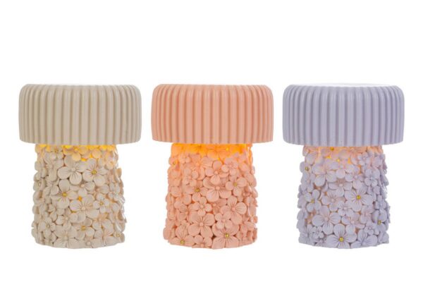 Lampada LED Fiori in resina, disponibile in tre varianti di colore, rappresenta una soluzione versatile e contemporanea per illuminare piccoli spazi con eleganza. Il design presenta una base decorata con dettagli floreali in rilievo che donano un tocco raffinato ad ogni ambiente.