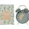 L’orologio verde con funzione sveglia e luce integrata si distingue per il design classico rivisitato in chiave moderna. Realizzato in resina resistente, presenta dettagli dorati che valorizzano l’aspetto decorativo di ogni ambiente. Grazie alla luce incorporata è facile leggere l’ora anche al buio. Le sue dimensioni compatte lo rendono ideale per comodini o scrivanie. Fornito con shopper coordinata, è pensato come bomboniera adatta ad ogni evento, offrendo un ricordo elegante e funzionale.