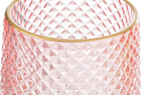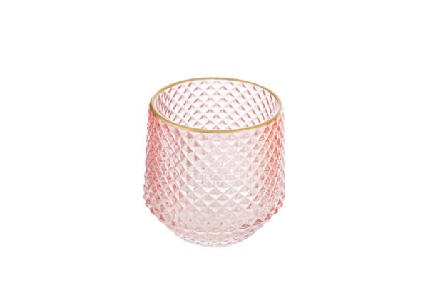 P/CANDELE VETRO COL. ROSA 9xh.10CM
