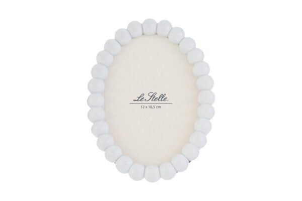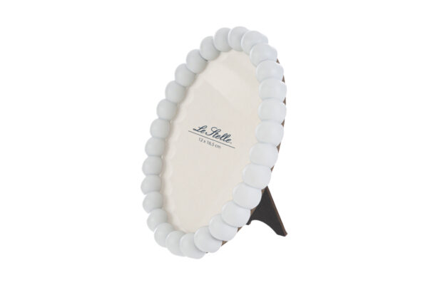 Eleganza senza tempo per il tuo ambiente. Il portafoto ovale con dettagli a perline e realizzato in resistente resina è perfetto per valorizzare ricordi preziosi. Misura 15,5×2,5xh.20 cm, ideale per ogni spazio decorativo raffinato.