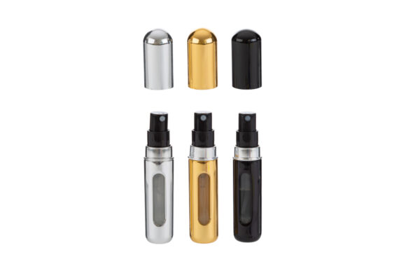 Portaprofumo spray da 5 ml, compatto e ricaricabile, ideale per chi apprezza comodità e stile in movimento. Disponibile in tre eleganti colori assortiti – oro, argento e nero – con un design raffinato ed essenziale. Realizzato in plastica resistente, è la bomboniera perfetta per ogni tipo di evento.