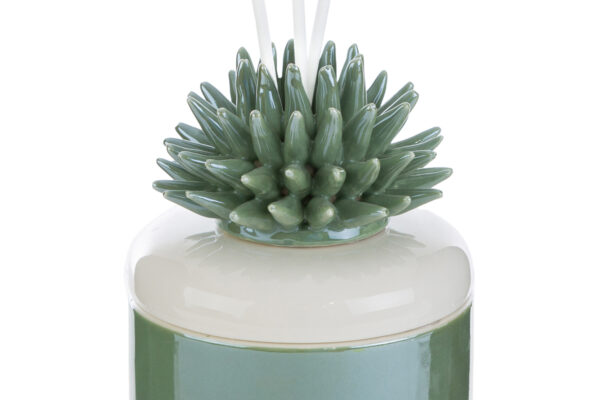 Raffinato profumatore in porcellana verde, ideale come bomboniera per ogni evento speciale. Con un design elegante e moderno che cattura lo sguardo, è perfetto per aggiungere un tocco di stile agli ambienti. Completo di astuccio, rappresenta un dono sofisticato e funzionale.