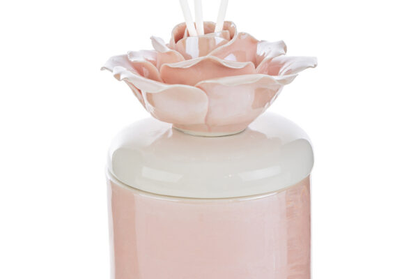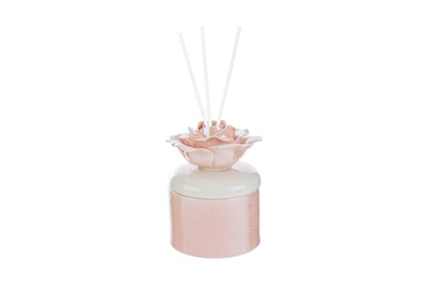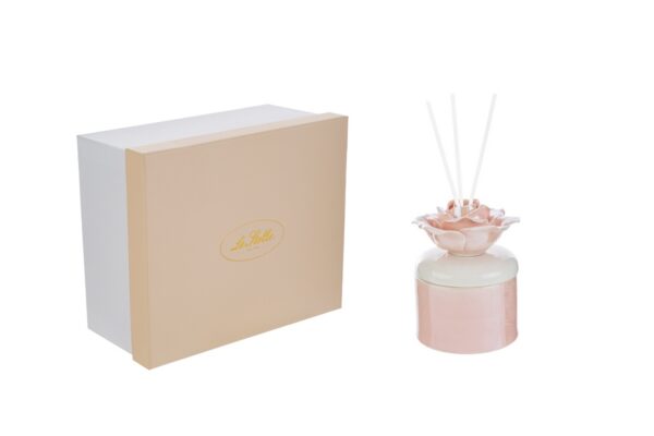 Un raffinato profumatore in porcellana color rosa, caratterizzato da un elegante design a forma di fiore che decora con stile qualsiasi ambiente. Perfetto come bomboniera per eventi speciali, dona un tocco di classe e freschezza. Completo di astuccio, è una scelta senza tempo e versatile.