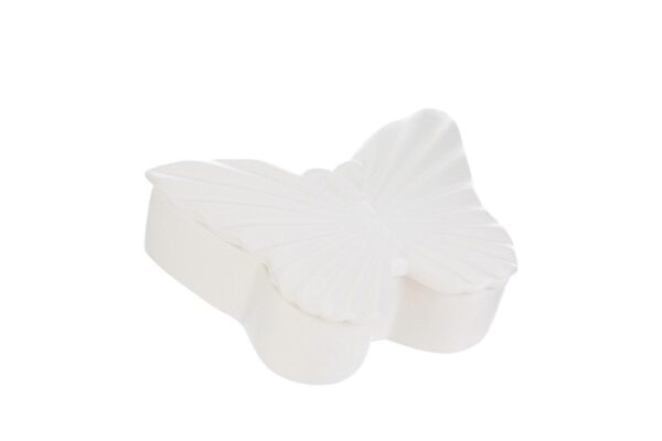 Eleganza e semplicità si incontrano in questa scatola a forma di farfalla, realizzata in porcellana bianca. Le dimensioni compatte (14×10,5xh.4,5 cm) la rendono ideale come bomboniera per ogni occasione. Perfetta per aggiungere un tocco raffinato ai tuoi eventi speciali.