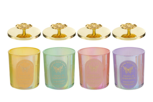 SCATOLA VETRO CANDELA 4COL.ASS.8xh.9CM C/SHOPPER 13693
