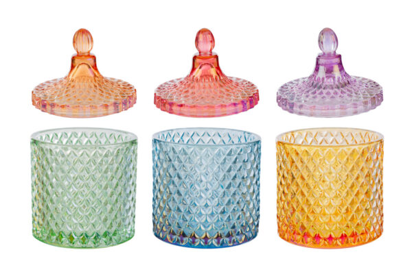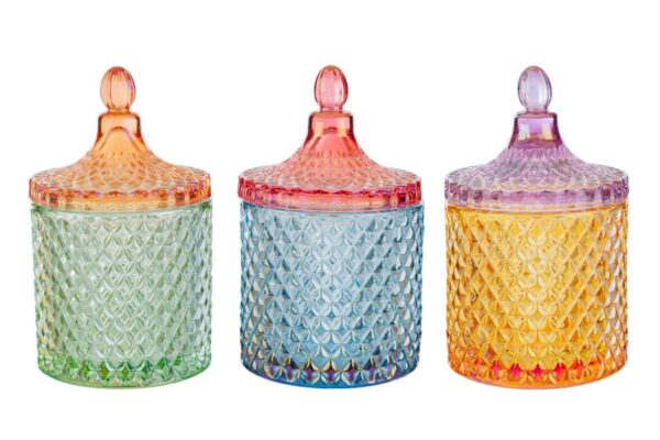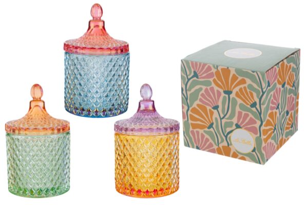 SCATOLA VETRO COLORATO 3 ASS.11xh.18CM C/COLOR/BOX