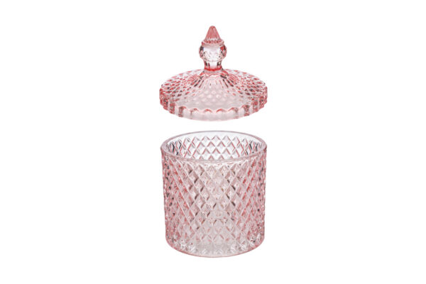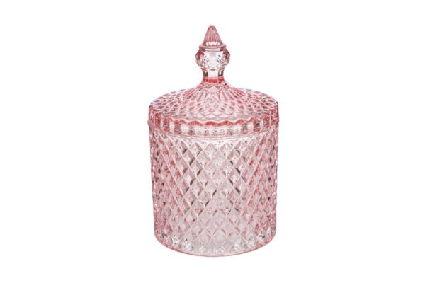 SCATOLA VETRO DOROTHY COL.ROSA diam.10,5xh.17,5CM