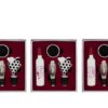 Un set di 4 accessori per vino creato in metallo, ideale per arricchire la tua tavola o come regalo raffinato. Completo di astuccio, disponibile in tre varianti eleganti, combina praticità e stile per veri amanti del buon vino.