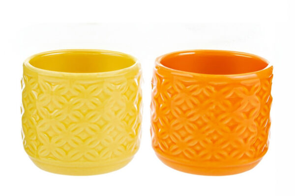 Perfetto per aggiungere un tocco di colore a qualsiasi ambiente, il vasetto in ceramica d.8,5xh.7 cm è disponibile in quattro tonalità assortite luminose e vivaci: turchese, bianco, giallo e arancione. Realizzato con materiale di alta qualità, è ideale per decorare spazi interni ed esterni con eleganza e stile moderno.