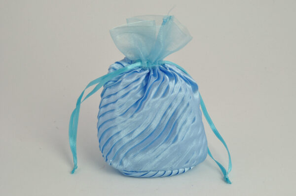 BOMBONIERASACCHETTO STOFFA C/FIOCCO CELESTE 10×14 CM